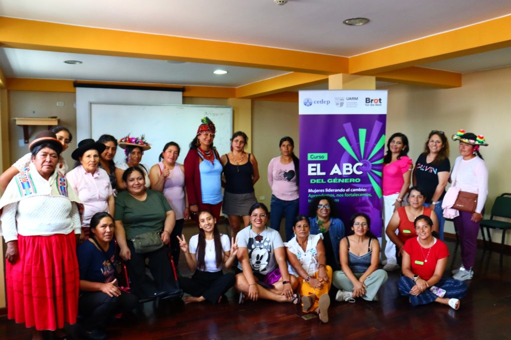 El curso ABC del Género, impulsado por el CEDEP – Centro de Estudios para el Desarrollo y la Participación, la Universidad Ruiz de Montoya y con el apoyo de Pan Para el Mundo, ha sido un espacio clave de formación para lideresas de Puno, Apurímac, Áncash, Cusco, Ayacucho, Amazonas, Loreto, Piura, Madre de Dios y Lima, ámbitos donde trabajan copartes de Pan Para el Mundo.